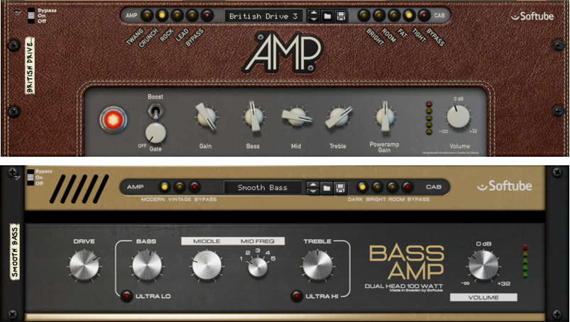 The Softube Amp at the top and the Softube Bass Amp at the bottom