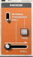 • In Roll mode, the unprocessed signal passes through unaffected until you turn up the Roll slider, see “Roll slider”. This gradually suppresses the Dry signal while simultaneously raising the Feedback and mixing the delay/echo output into the Wet signal. The Roll mode is useful for repeat, stutter and glitch effects. For Roll mode, we recommend that the Dry/Wet parameter in the Output section (see below) is set to (or close to) Wet.