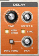 While the parameters specific to The Echo are described in detail below, some features and procedures are common to all effect devices. Please refer to “Common effect device features” for further info about the Bypass On/Off switch. It should however be noted that the Input Meter on The Echo differs from the standard 7-segment LED meter found on other effect devices in Reason; The Echo features a 3-segment meter with the usual green, yellow and red LED (the latter indicates clipping).