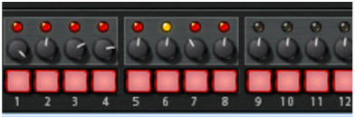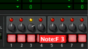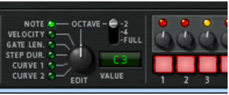 Step Sequencer Thor’s Step Sequencer is a further development of the step sequencers which were often present in vintage analog modular systems. It can be used for programming arpeggios or short melody sequences. Alternatively, it can be used purely as a modulation source. You can have up to 16 steps, and each step can be programmed with various values such as Note pitch, Velocity, Step Duration etc. Basic operation The main parameters and functions are as follows: The row of 16 buttons are used to program each step’s on or off status. A lit button means that the step is active, and a dark button means that the step will be a rest (silent). Each step button has a knob above it, which is used to set values for the corresponding step. The Edit knob determines what value you set with the step knobs. The available Edit values are Note (pitch), Velocity, Gate length, Step duration and Curve 1 and 2. The Run button starts/stops the step sequencer. What exactly happens when you press Run depends on the Run mode - see below. Setting the Run mode The Run mode is set with the lever beside the Run button. The set mode governs how the step sequencer is played back when you press Run. The options are as follows: Repeat mode - this will repeat the sequence continuously. Click the Run button again or use the Transport to stop. 1 Shot mode - this will play the sequence once then stop. Step mode - the Run button steps the sequencer forward one step at a time. Off - the step sequencer is inactive. Setting the direction The Direction parameter is used to set the direction of the step sequence. The following options are available: Forward - plays the sequence from the first step to the last. Reverse - plays the sequence from the last step to the first. Pendulum 1 - plays the sequence from the first step to the last, then from the last step to the first. I.e. the last and first step is played twice when the sequencer reverses direction. Pendulum 2 - plays the sequence from the first step to the last, then from the second last step to the first, i.e. without repeating the last/first step when reversing direction. Random - plays the steps in a random order. Programming step note pitch To program step note pitch, you proceed as follows: 1. Make sure that the Step Seq Trigger button is activated in the Controller panel. 2. Set the Run mode to “Repeat”. You don’t have to use Repeat mode but it makes it easier to follow the following steps. 3. Start the step sequencer by pressing the Run button. You should now hear a sequence of repeated notes, each with the same pitch (C3). The current step is indicated by a yellow LED above the step buttons. 4. Make sure that the Edit knob is set to Note. 5. Turn one of the step knobs above one of the steps. A tooltip shows you what current note pitch the knob is set to, and when the sequencer repeats you should be able to hear the change in pitch for that step. Turn clockwise to raise the pitch in semitone increments. Turn counter-clockwise to lower the pitch. You can set the knob’s note range by using the Octave lever to the left of the step buttons. Available note ranges are 2 Octaves (i.e. one octave up and down from the middle knob position (C3), 4 Octaves (i.e. two octaves up and down from the middle position (C3), or Full (-C2 to G8). Note that the octave range can be set independently for each step. Each step memorizes the current octave range when the pitch is set for that step, and will keep this octave range until you change the pitch for the step with a different octave range setting. You can either program steps “on the fly” (with the Step sequencer running) or step by step (Step mode). In Step mode, you press Run to forward the step number one position so you can set step parameters for one step at a time. By using this general method you can continue to enter note pitch for other steps. Inserting rests To make step sequences more rhythmically interesting, you can program rests for steps. This is simply done by pressing one or several step buttons so they go dark. Dark steps will be rests. Note that the Step Duration value still “counts” for rests. Setting the number of steps You can set how many steps a sequence should have before starting over using the Steps knob at the far right on the panel. Up to 16 steps can be used. The lit LEDs above each step button show the number of steps currently used. You can also change number of steps by clicking on a LED directly - the sequencer will then stop/start over at the selected step. Setting Rate The Rate knob determines the rate of the step sequence. • You can either use “free running” rates (i.e. not synced to main sequencer tempo) or synced tempo. This is set with the Sync button on/off status. If Sync is active you can set the tempo in various beat resolutions. Setting other values for steps For each step you can also program other parameters with the step value knobs apart from note pitch. You use the Edit knob to set one the following: Velocity - if this is selected as the Edit mode you can set a velocity value for each step. Default value is 100, range is 0-127. Gate Length - if this is selected as the Edit mode you can set a Gate Length value for each step. Default is 75%. Gate Length determines the length of the note played for that step. Step Duration - if this is selected as the Edit mode you can set a Step duration value for each step. This parameter determines the total length of the step, which is a factor related to the sequencer rate. Range is 1/4 to 4. E.g. if Rate is 1/16, “1” means a 1/16-note will be played, a “4” means a 1/4-note will be played, and so on. The Curves 1 and 2 allow you to set values for each step that can be sent to control parameters of your choice. This is done in the Modulation bus routing section, where these two independent Curves are selectable as Source controllers. You can compare these curves to the Curve CV output of the Matrix - they simply 